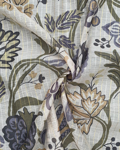 Munar with Zari is a lightweight printed polyester fabric enhanced with subtle metallic zari for a festive shimmer. At 55 GSM and 40″ width, it offers a sheer yet durable texture, perfect for dupattas, overlays, and light ethnic wear. Designed for elegance, it delivers a graceful drape ideal for seasonal festive collections.