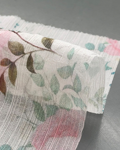 Crinkle Zari is a digitally printed polyester base enhanced with a soft crinkle texture and subtle metallic sheen. At 60 GSM, it offers airy lightness and graceful movement—ideal for festive kurtis, dupattas, and flowy occasionwear. The delicate zari shimmer adds a refined touch, making it perfect for elegant ethnic and fusion collections.