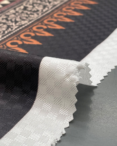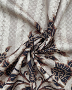 Dobby Box Design Shawl is a printed polyester dobby with a defined box texture and elegant drape. Weighing 115 GSM, it combines structure with softness, making it ideal for shawls, scarves, and lightweight outer wraps. Its dobby weave adds subtle dimension—perfect for winter accessories and premium ethnic layering pieces.