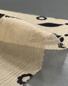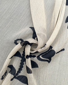 Super Crinkle Chiffon (Digital Print) — an airy 60 GSM polyester fabric featuring a soft crinkled texture that enhances drape and movement. Digitally printed for sharp, vibrant designs with a sheer, delicate hand feel. Perfect for dupattas, flowy tops, and festive layers that demand lightness and elegant fluidity.